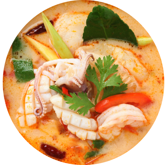 A hot and sour shrimp soup bursting with lemongrass, kaffir lime leaves, galangal, and chilies. Bold, aromatic, and refreshing—a perfect balance of spicy, tangy, and savory.
