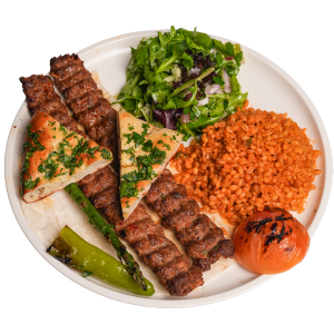 Marinated lamb or chicken, seasoned with paprika, cumin, and garlic, is skewered and grilled over charcoal. Served in warm flatbread with crisp salad, onion, and a drizzle of creamy, garlic-yogurt sauce for a smoky, satisfying meal.