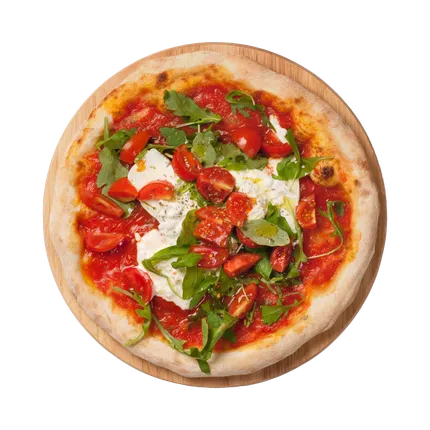 Hand-kneaded dough with San Marzano tomatoes, fresh mozzarella, basil, and olive oil. Baked in a scorching wood-fired oven for 60-90 seconds. The result: a soft, chewy crust with charred spots and vibrant, fresh flavors.