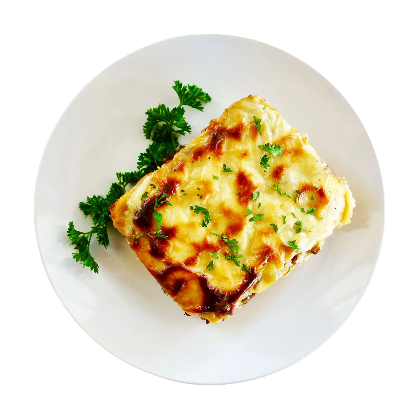 Layers of fresh pasta sheets, rich beef ragù, creamy béchamel sauce, and Parmigiano-Reggiano cheese. Baked until golden and bubbly. Each bite delivers perfect harmony of savory meat, smooth cheese, and al dente pasta textures.
