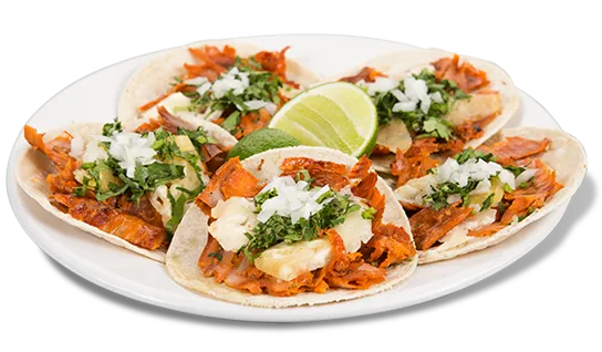 Thin pork slices marinated in chilies, achiote, and pineapple, then vertically roasted. Served on corn tortillas with chopped onion, cilantro, and a squeeze of lime. A delicious fusion of Lebanese and Mexican culinary traditions.