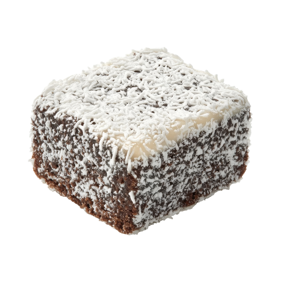 A classic Australian treat made from squares of soft butter sponge cake, coated in a thin layer of chocolate icing, and rolled in desiccated coconut. A simple, delightful combination of moist cake, rich icing, and fluffy coconut.
